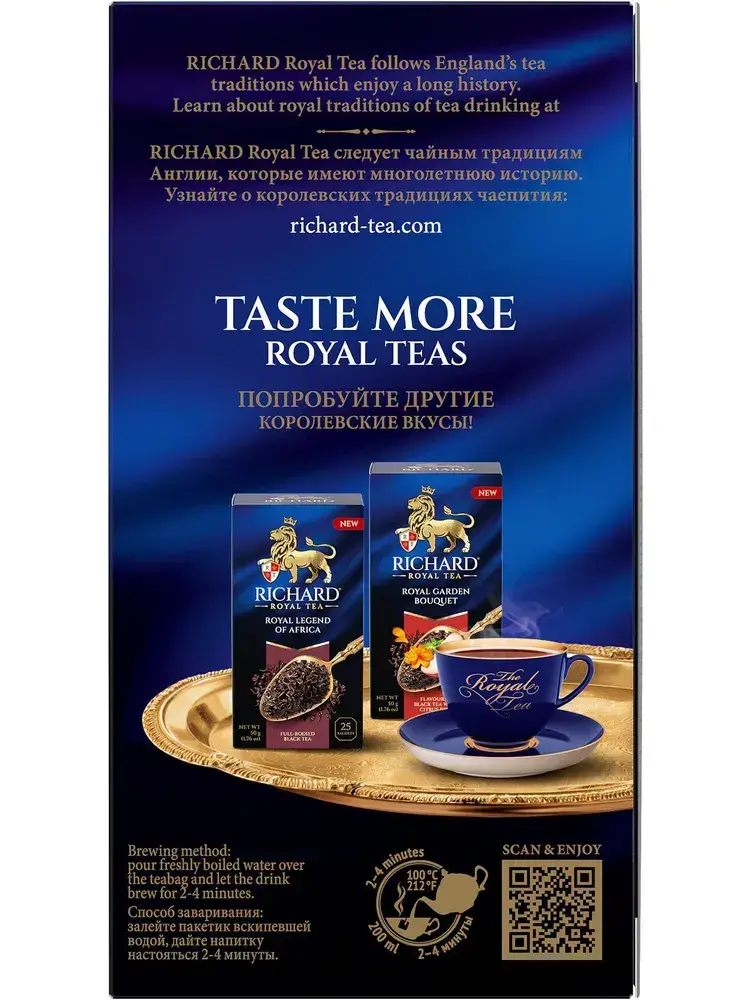 Чай в пакетиках Richard Royal с ароматом бергамота, цедрой цитруса и ноткой ванили, черный, 25 шт