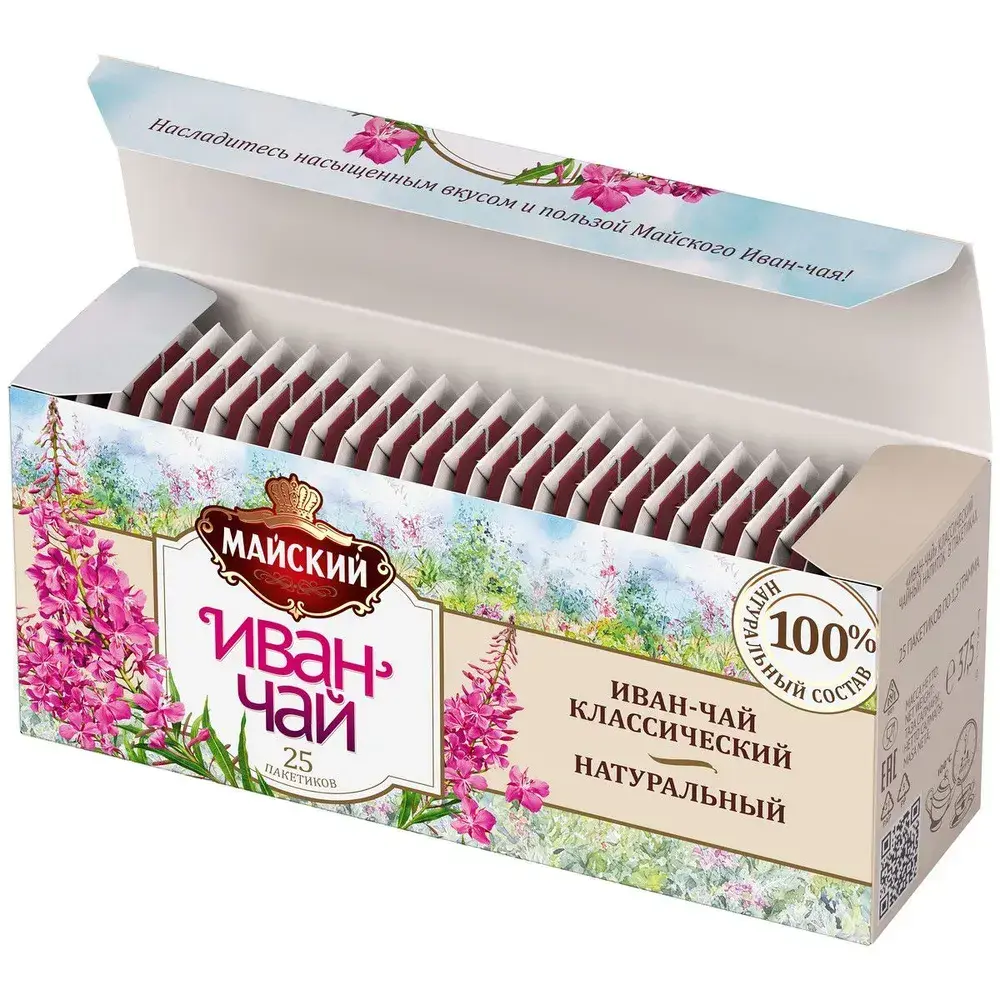 Чайный напиток в пакетиках Майский "Иван-чай Классический", травяной, 25 пакетиков по 1,5 г