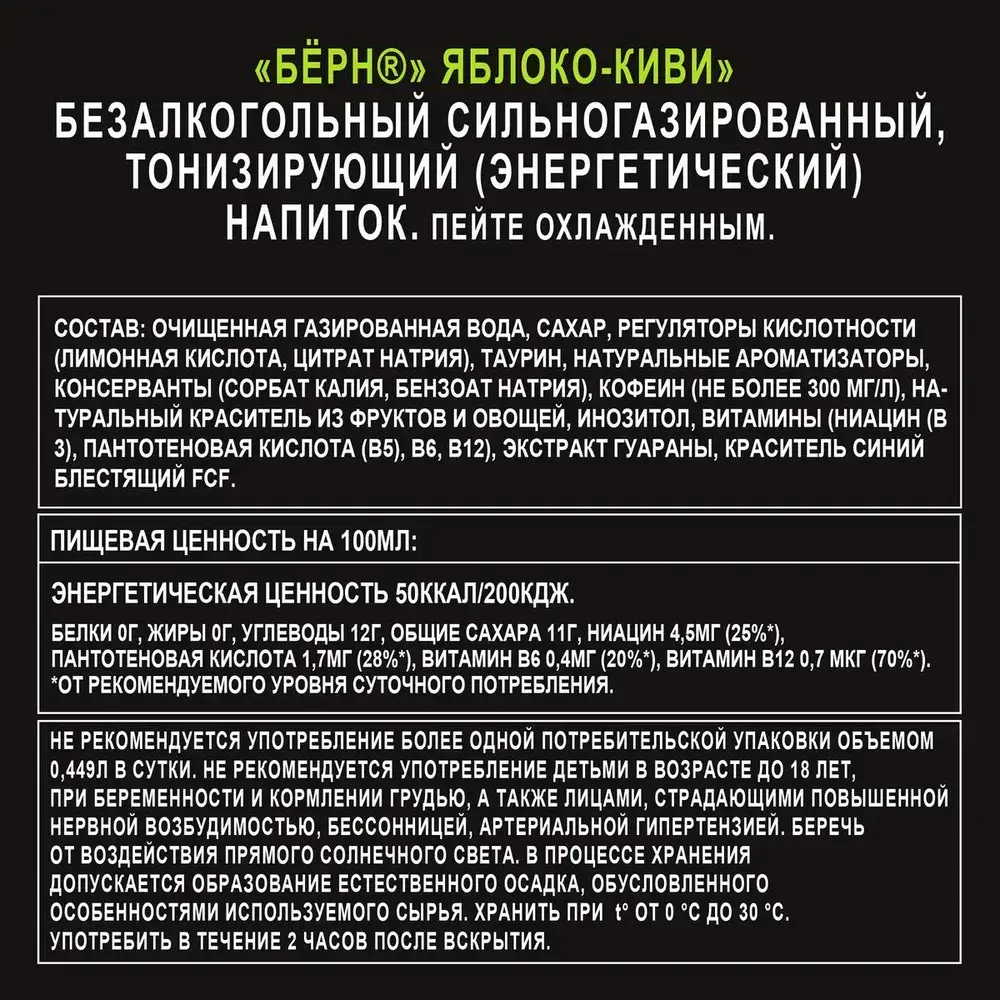 Энергетический напиток Burn Яблоко-Киви, 449 мл