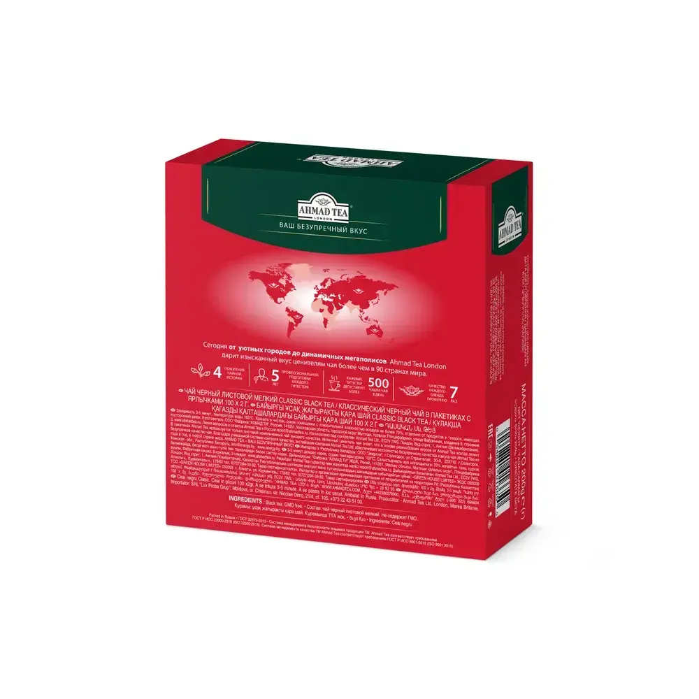 Классический черный чай в пакетиках Ahmad Tea, 100 шт
