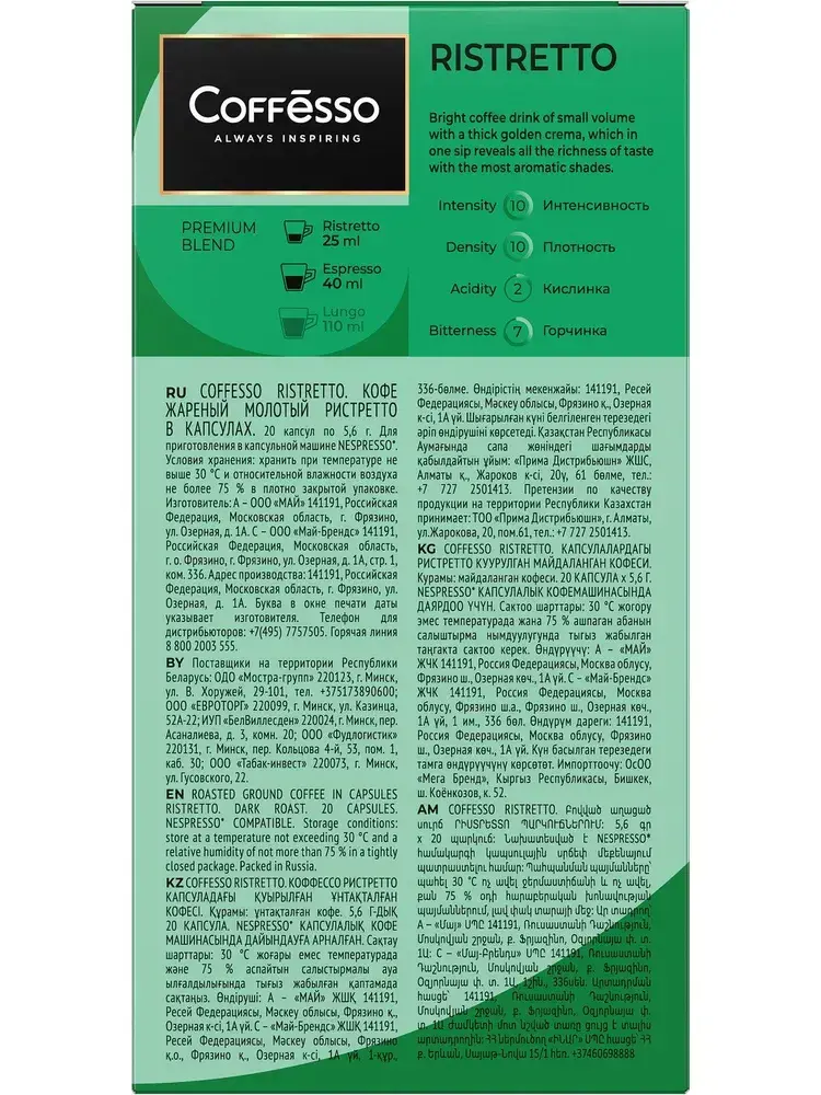 Кофе капсульный Coffesso Ristretto blend, для системы Nespresso, 20 шт