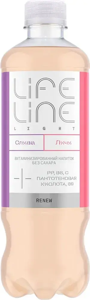 Напиток LifeLine Light без сахара, с витаминами, Renew, слива и личи, без газа 0,5 л