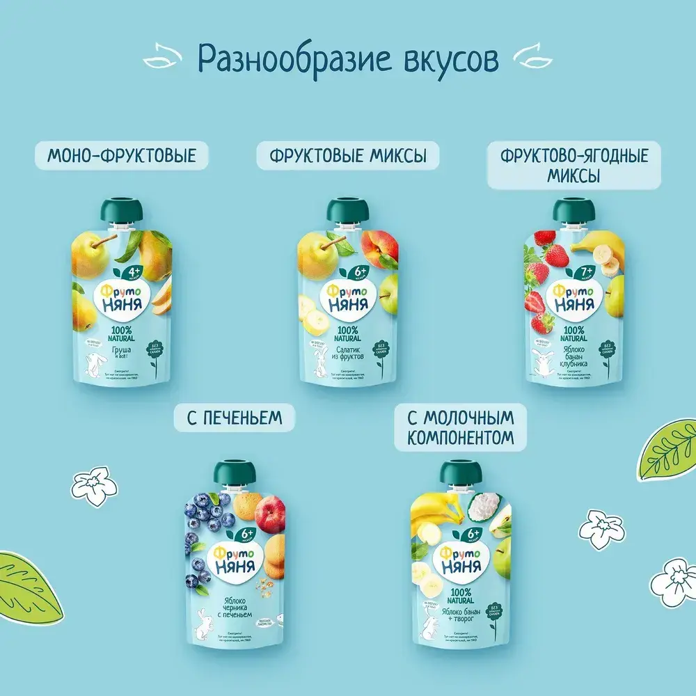 Пюре фруктовое ФрутоНяня с 6 месяцев, из яблок, малины и творога, 90 г