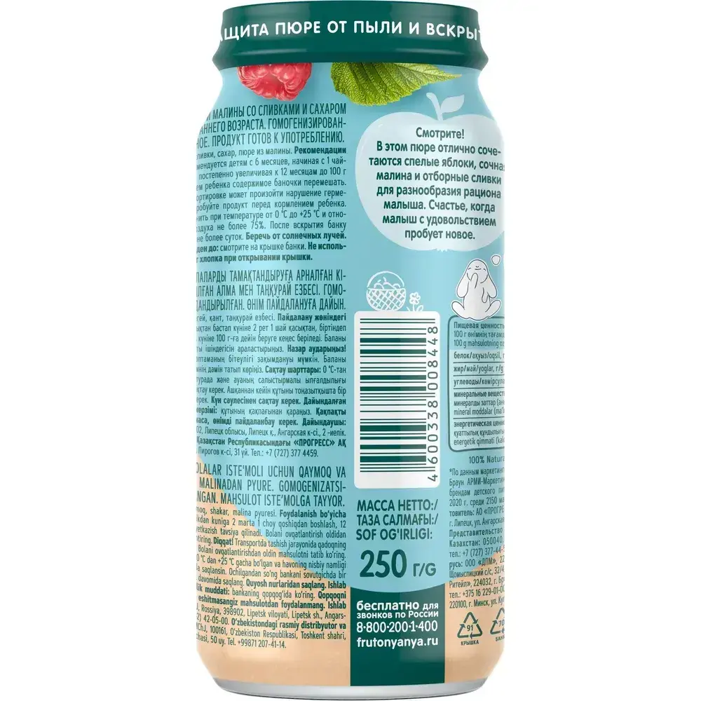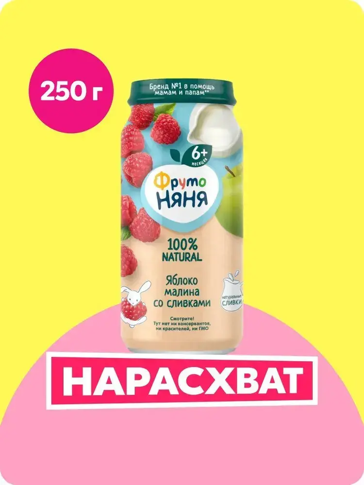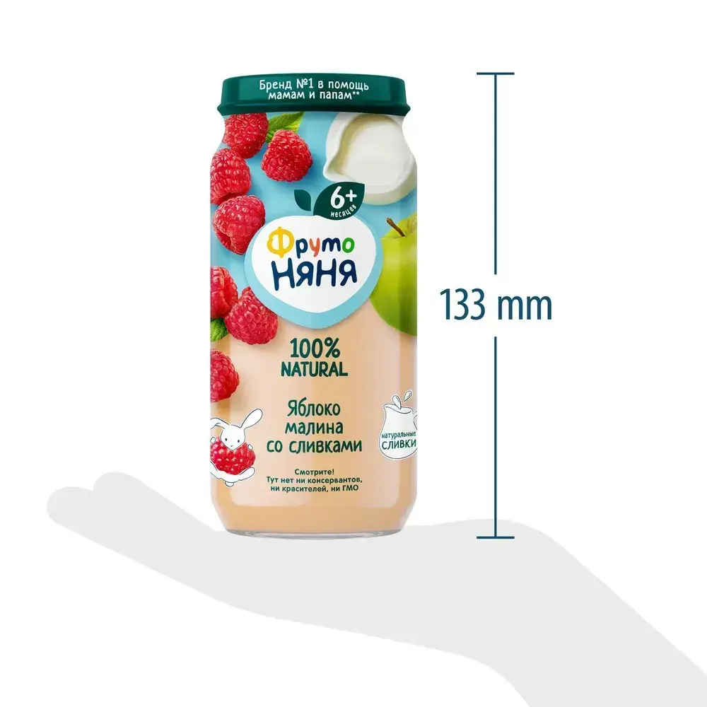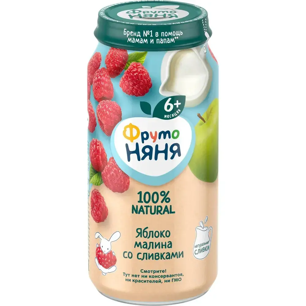 Пюре фруктовое ФрутоНяня с 6 месяцев, яблоко и малина со сливками, 250 г
