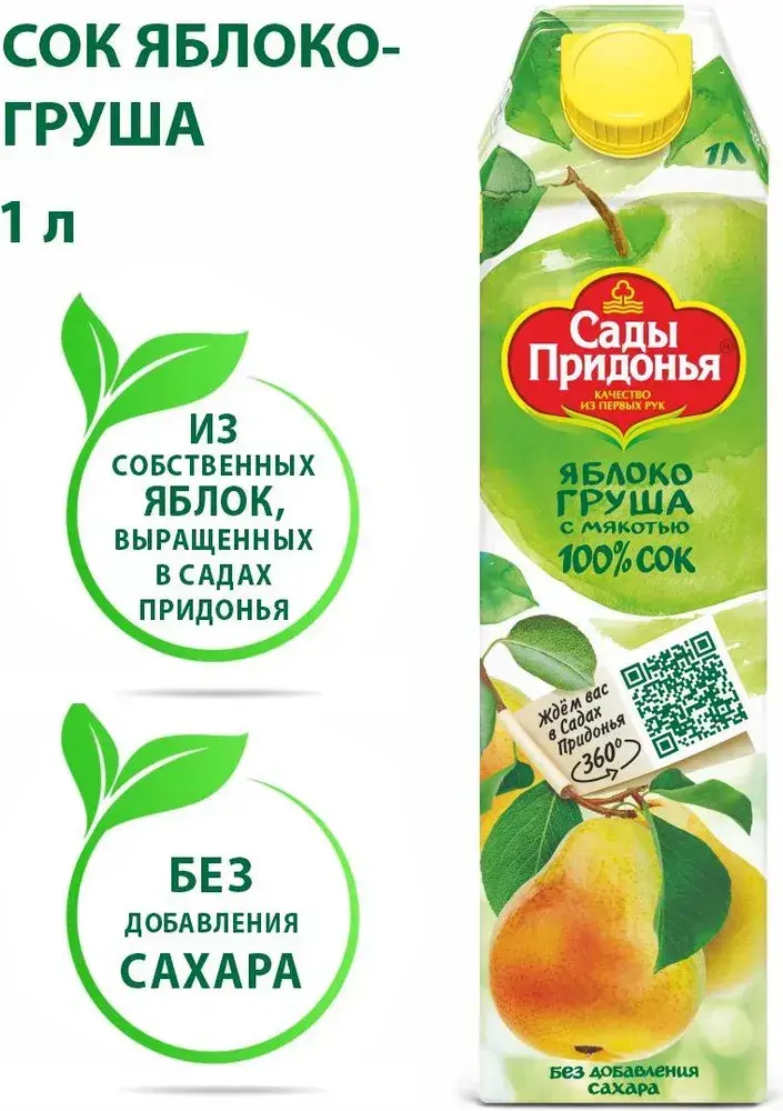 Сок Сады Придонья Яблочно-Грушевый с мякотью восстановленный, 1 л
