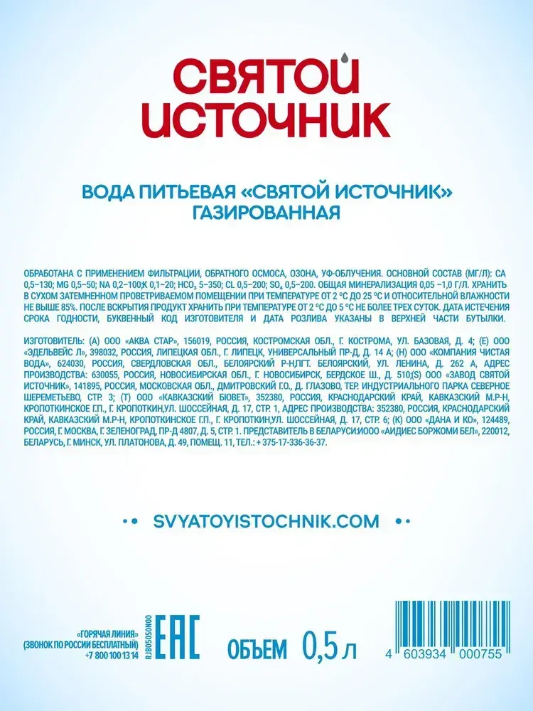 Вода газированная Святой Источник, 12 шт х 0,5 л
